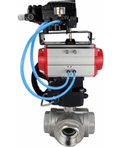Кран шаровой DN.ru BV3232P(4pc)-SP-3WL-T-ISO-H Ду32 Ру63 ст.проходной 3-ходовой, L-тип, нерж. сталь SS316, внутренняя резьба, PTFE, с пн.приводом PA-DA-065, ручным дублером MON1-250-T26-ISO и эл.пневматич. позиционером DN.ru YT-1000RSN без обратной связи с сертификатами качества. Доставка. Гарантия. В наличии! Звоните!