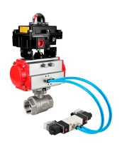 Кран шаровой DN.ru BV3232P(2pc)-FP-T-ISO-H Ду40 Ру63, полнопроходной внутреннняя резьба, нержавеющая сталь SS316, уплотнение - PTFE, с пневмоприводом PA-SA-083 с возвратными пружинами, с пневмораспределителем 4V320-10 220В, с БКВ APL-410N EX с сертификатами качества. Доставка. Гарантия. В наличии! Звоните!