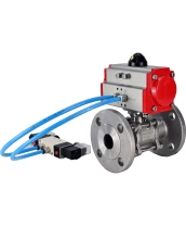 Кран шаровой DN.ru BV3232P(3pc)-FP-F-ISO-H Ду80 Ру25, трехсоставной полнопроходной фланцевый, нержавеющая сталь SS316, уплотнение - PTFE, с пневмоприводом PA-DA-105 двойного действия, с пневмораспределителем 4V320-08 220В с сертификатами качества. Доставка. Гарантия. В наличии! Звоните!