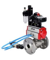 Кран шаровой DN.ru BV3232P(3pc)-FP-F-ISO-H Ду50 Ру40, трехсоставной полнопроходной фланцевый, нержавеющая сталь SS316, уплотнение - PTFE, с пневмоприводом PA-DA-083 двойного действия, с пневмораспределителем 4V320-08 220В, с БКВ APL-210N, с БПВ AFC2000 с сертификатами качества. Доставка. Гарантия. В наличии! Звоните!