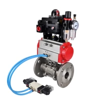 Кран шаровой DN.ru BV3232P(3pc)-FP-F-ISO-H Ду40 Ру40, трехсоставной полнопроходной фланцевый, нержавеющая сталь SS316, уплотнение - PTFE, с пневмоприводом PA-DA-065, с пневмораспределителем 4V320-08 220В, с БКВ APL-410N EX, с БПВ AFC2000 с сертификатами качества. Доставка. Гарантия. В наличии! Звоните!