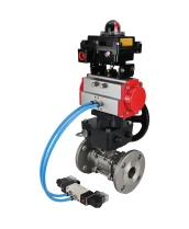 Кран шаровой DN.ru BV3232P(3pc)-FP-F-ISO-H Ду40 Ру40, трехсоставной полнопроходной фланцевый, нержавеющая сталь SS304, PTFE, с пневмоприводом PA-DA-065, с пневмораспределителем 4V320-08 220В, с БКВ APL-410N EX, ручным дублером MON1-250-T26-ISO с сертификатами качества. Доставка. Гарантия. В наличии! Звоните!
