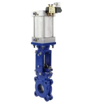 Задвижка шиберная ножевая DN.ru GVKR1331E-2W-Fb-2P Ду50 Ру10 двусторонняя, межфланцевая, клин - однодисковый, шпиндель - выдвижной, корпус - чугун, уплотнение - EPDM, с пневмоприводом и пневмораспределителем 4V210-08 24В KUOIN с сертификатами качества. Доставка. Гарантия. В наличии! Звоните!