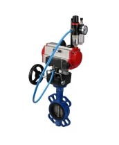 Затвор дисковый поворотный DN.ru WBV1413E-2W-Fb-H Ду100 Ру16, корпус - чугун GGG50, диск - чугун GGG40, EPDM, с пневмоприводом PA-DA-083 двойного действия, пневмораспределителем 4М310-08 220В NAMUR, ручным дублером MON2-450-T28-ISO, БПВ AFC2000
