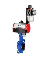 Затвор дисковый поворотный DN.ru WBV1132N-2W-Fb-H Ду150 Ру16, корпус - чугун GG25, диск - нержавеющая сталь 316L, уплотнение - NBR, с пневмоприводом DN.ru PA-DA-105 двойного действия, пневмораспределителем 4М310-08 220В NAMUR, БПВ AFC2000
