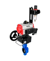 Затвор дисковый поворотный DN.ru WBV0232E-2W-Fb-H Ду25 Ру16, корпус - алюминиевый сплав, диск - нержавеющая сталь 316L, уплотнение - EPDM, с пневмоприводом PA-DA-065, пневмораспределителем 4М310-08 220В NAMUR, ручным дублером MON1-250-T26-ISO, БПВ AFC2000