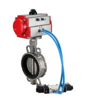 Затвор дисковый поворотный DN.ru WBV3232V-2W-Fb-H Ду65 Ру16, корпус - нержавеющая сталь 316L, диск - нержавеющая сталь 316L, уплотнение - Viton, с пневмоприводом PA-SA-105 с возвратными пружинами, с пневмораспределителем 4V320-10 220В