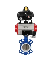 Затвор дисковый поворотный DN.ru WBV3432P-2W-Fb-H Ду80 Ру16, корпус - углеродистая сталь WCB, диск - нержавеющая сталь 316L, уплотнение - PTFE, с пневмоприводом PA-DA-083 двойного действия, с пневмораспределителем 4V320-08 220В, с БКВ APL-410N EX