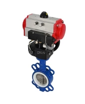 Затвор дисковый поворотный DN.ru WBV3432P-2W-Fb-H Ду80 Ру16, корпус - углеродистая сталь WCB, диск - нержавеющая сталь 316L, уплотнение - PTFE, с пневмоприводом PA-DA-083, с пневмораспределителем 4V320-08 220В, с ручным дублером MON2-450-T28-ISO