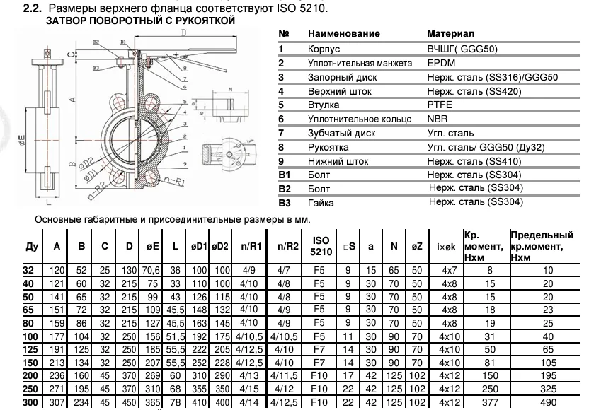 Затвор дисковый поворотный межфланцевый чугунный с нержавеющим диском манжета NBR с рукояткой Benarmo Ду40-300 Ру16